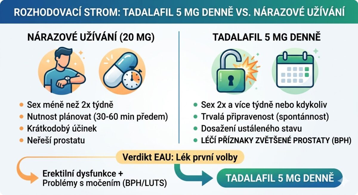 Tadalafil 5 mg denně vs. nárazové užívání: Vše, co potřebujete vědět pro návrat ke spontánnosti