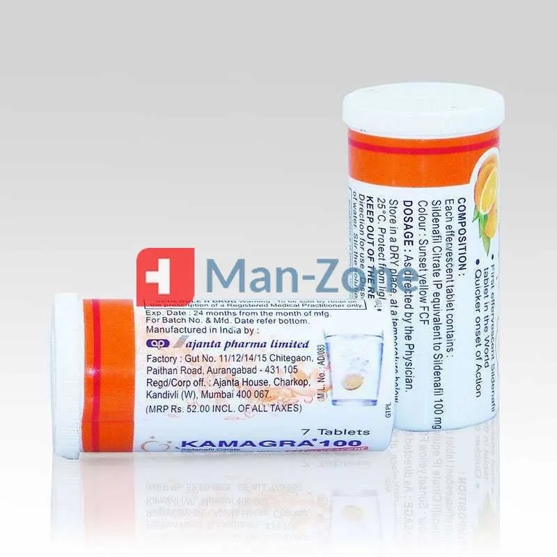 Jedna tableta Kamagra šumivá obsahuje 100 mg Sildenafil citrátu.